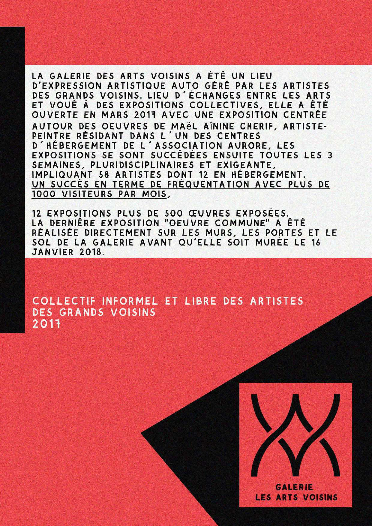 Nous venons de recevoir la présentation 2017 de la Galerie Les Arts Voisins.